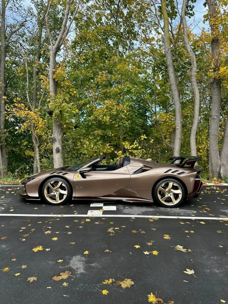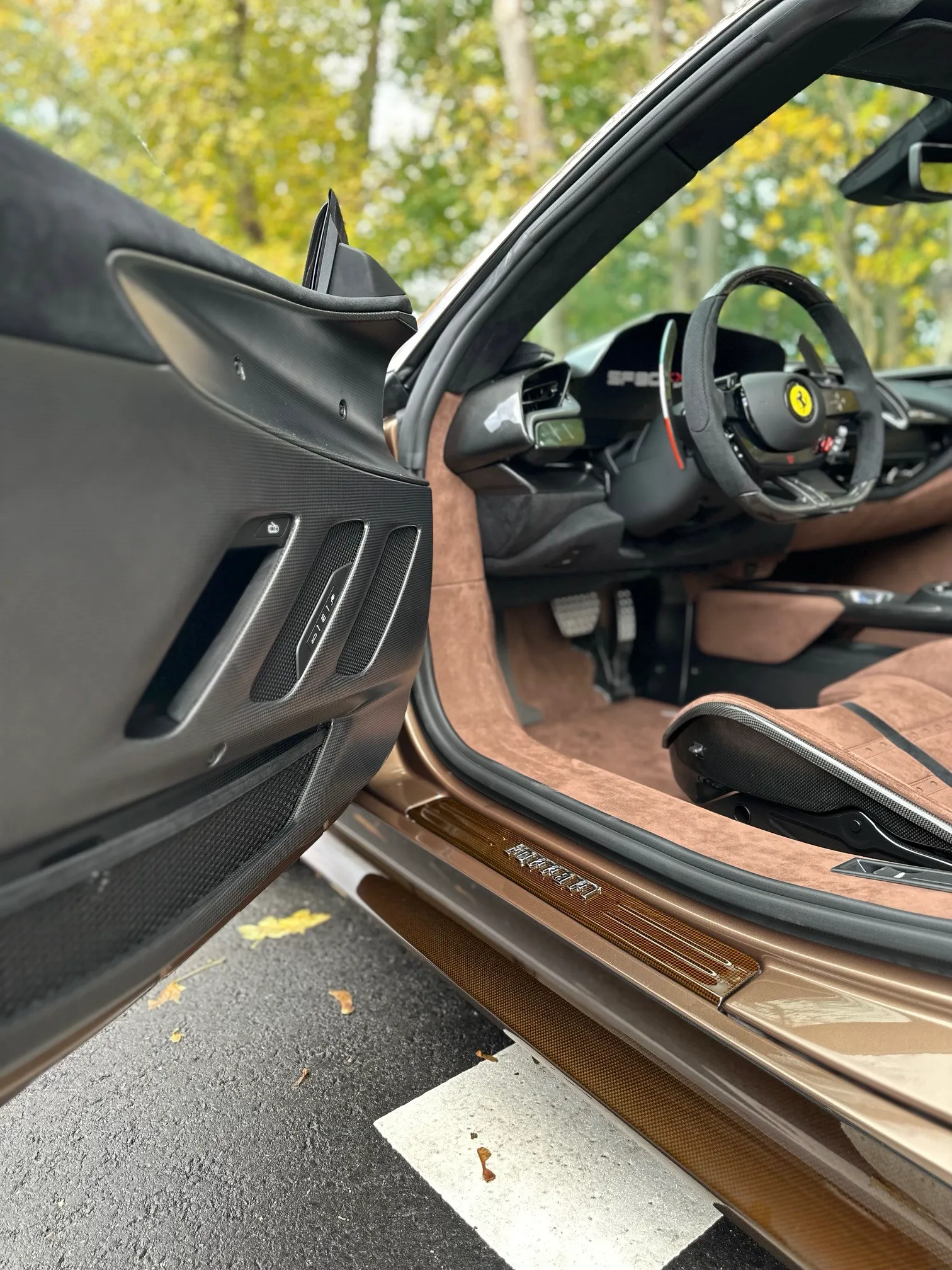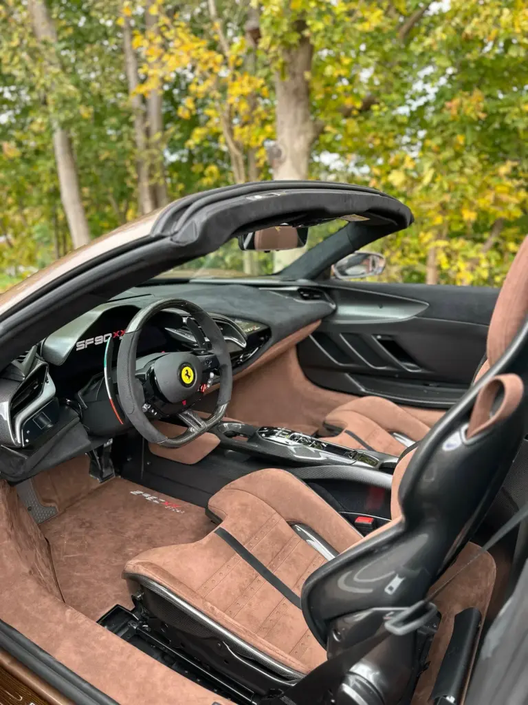 This Ferrari SF90XX Spider represents the pinnacle of Ferrari’s roadlegal performance — an extreme, trackinspired evolution of the SF90 platform with the exhilaration of openair driving. Finished in the iconic Bronzo Montecarlo from Ferrari’s Special Colours programme, the exterior is enhanced with a full Special Carbon Fibre Racing Livery, creating a dramatic and purposeful presence that blends motorsport aggression with handcrafted Italian artistry.